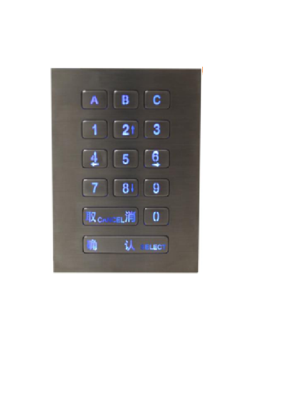 • Sealing to IP67, 15 keys. • Compact format design • Robust design, vandal proof structure • Brushed high quality stainless steel surface • With water tight gasket • With red/blue/white/green backlight optional • Top panel mount with thread bolts
